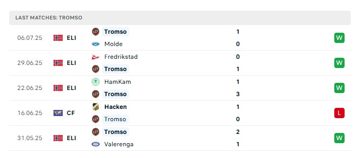 - Phong độ gần đây Tromso