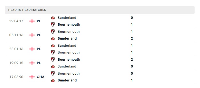 Lịch sử đối đầu Sunderland vs Bournemouth