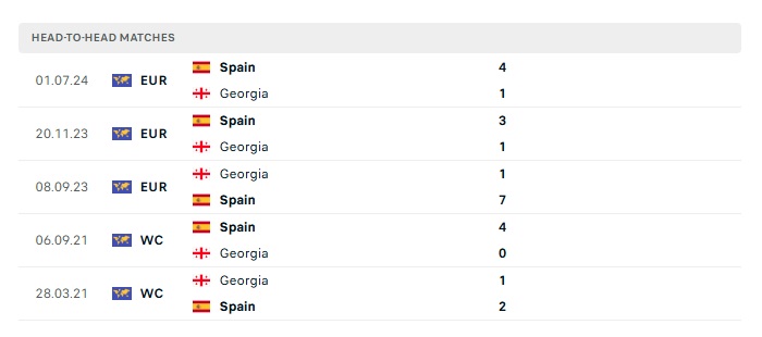 Lịch sử đối đầu Tây Ban Nha vs Georgia