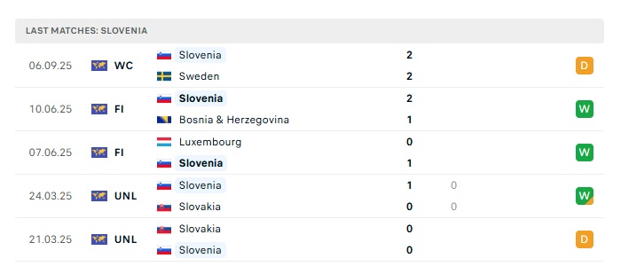 • Phong độ gần đây Slovenia