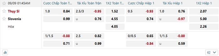Soi kèo châu Á, kèo Thụy Sỹ vs Slovenia