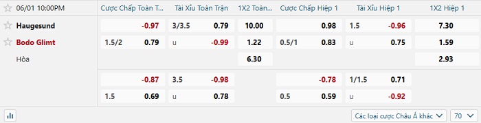 Tip kèo Châu Á full trận Haugesund vs Bodo Glimt