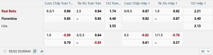 Tip kèo Châu Á full trận Betis vs Fiorentina