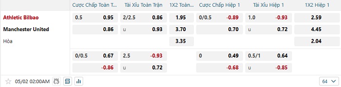 Tip kèo Châu Á full trận Bilbao vs Man United