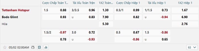Tip kèo Châu Á hiệp 1 Tottenham vs Bodo Glimt