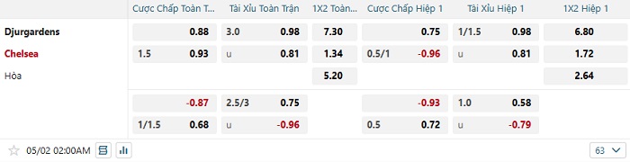 Tip kèo Châu Á full trận Djurgardens vs Chelsea