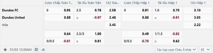 Tip kèo Châu Á hiệp 1 Dundee FC vs Dundee United