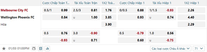 Tip kèo Châu Á hiệp 1 Melbourne City vs Wellington