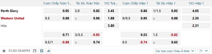Tip kèo Châu Á hiệp 1 Perth Glory vs Western United