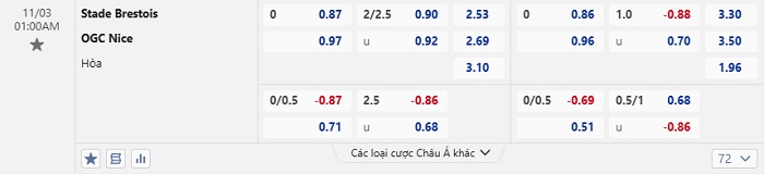 Tip kèo Châu Á full trận Brest vs Nice