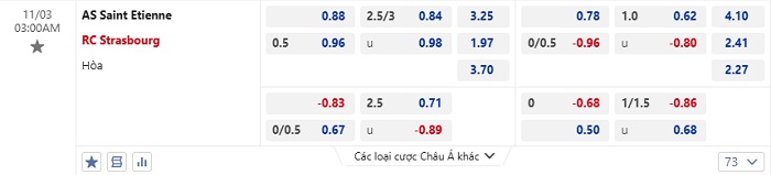 Tip kèo Châu Á full trận Saint Etienne vs Strasbourg