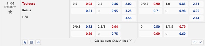 Tip kèo Châu Á full trận Toulouse vs Reims