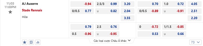 Tip kèo Châu Á hiệp 1 Auxerre vs Rennes