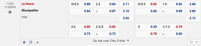 Tip kèo Châu Á full trận Le Havre vs Montpellier