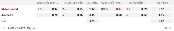 Tip kèo Châu Á hiệp 1 Malut United vs Arema FC