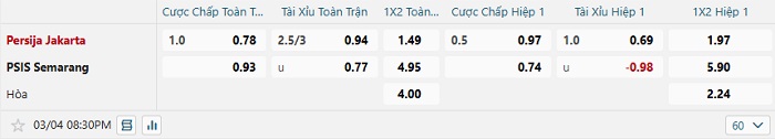- Tip kèo cá cược Châu Á hiệp 1: Chọn Persija Jakarta -1/2