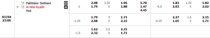 Tip kèo Châu Á full trận Pakhtakor vs Al Hilal