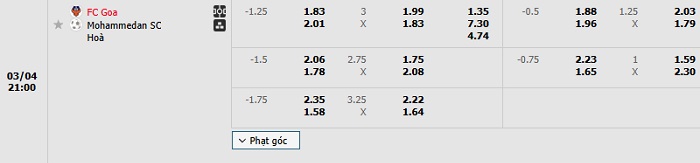 - Tip kèo cá cược Châu Á full trận: Chọn FC Goa -1 1/4