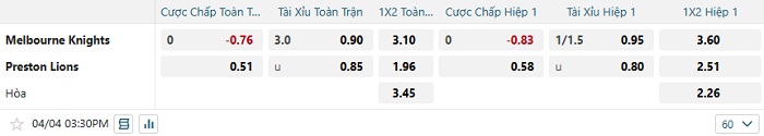 Tip kèo Châu Á hiệp 1 Melbourne Knights vs Preston Lions