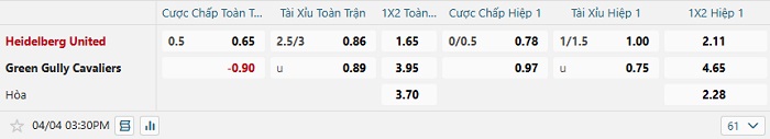 Tip kèo Châu Á hiệp 1 Heidelberg vs Green Gully Cavallers