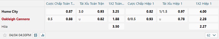 Tip kèo Châu Á full trận Hume City vs Oakleigh Cannons