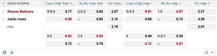 Tip kèo Châu Á full trận Shonan Bellmare vs Jublio Iwata
