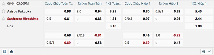 Tip kèo Châu Á hiệp 1 Avispa vs Sanfrecce Hiroshima
