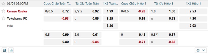 Tip kèo Châu Á hiệp 1 Cerezo Osaka vs Yokohama