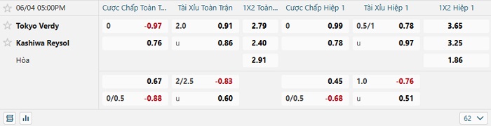 Tip kèo Châu Á full trận Tokyo Verdy vs Kashiwa Reysol