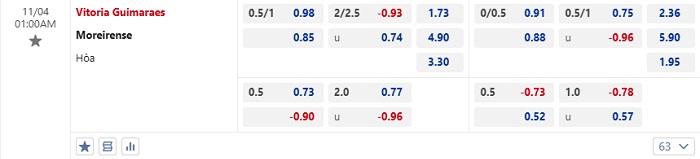 Tip kèo Châu Á hiệp 1 Vitoria vs Moreirense