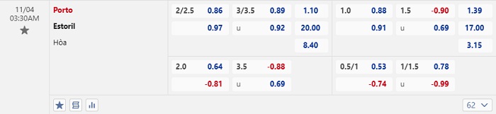 Tip kèo Châu Á full trận Porto vs Estoril