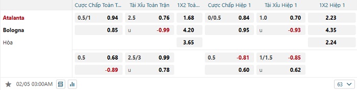 Tip kèo Châu Á full trận Atalanta vs Bologna