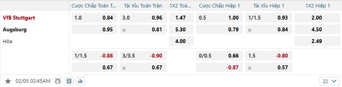 Tip kèo Châu Á full trận Stuttgart vs Augsburg