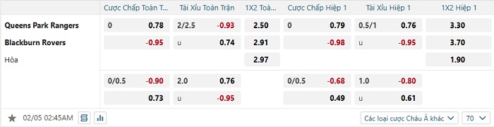 Tip kèo Châu Á full trận QPR vs Blackburn Rovers