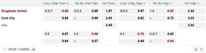 Tip kèo Châu Á hiệp 1 Drogheda vs Cork City