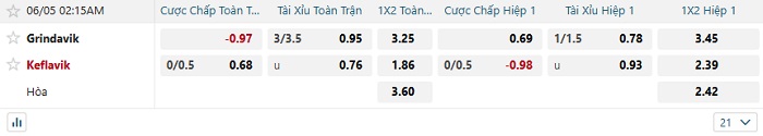 - Dự đoán tỷ số cả trận: Grindavik 0 – 0 Keflavik