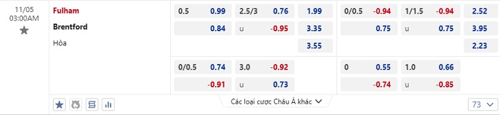 Tip kèo Châu Á full trận Fulham vs Brentford