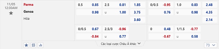 Tip kèo Châu Á full trận Parma vs Genoa