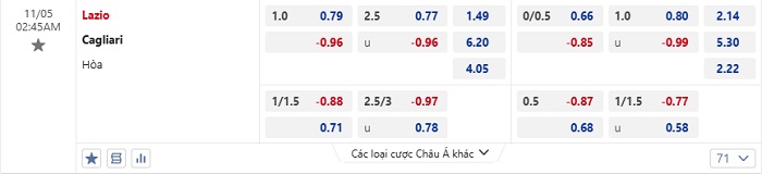 Tip kèo Châu Á full trận Lazio vs Cagliari