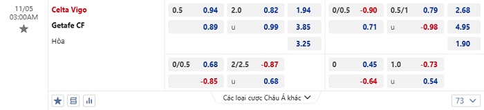 Tip kèo Châu Á hiệp 1 Celta Vigo vs Getafe