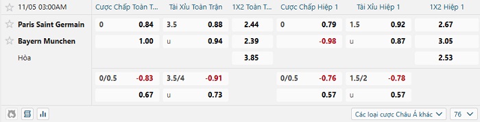 Tip kèo Châu Á full trận PSG vs Bayern Munich