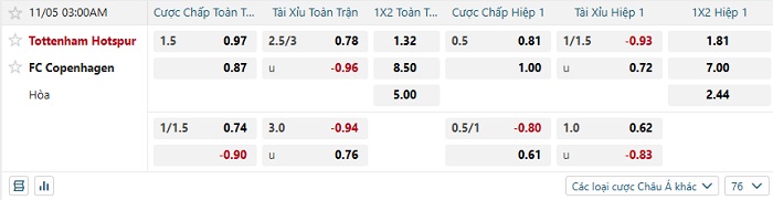 Tip kèo Châu Á hiệp 1 Tottenham vs Copenhagen