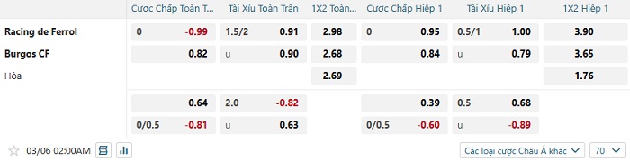 Tip kèo Châu Á full trận Racing de Ferrol vs Burgos