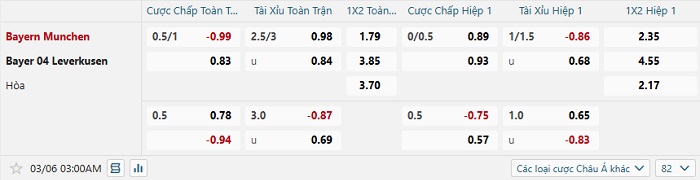 Tip kèo Châu Á hiệp 1 Bayern Munich vs Bayer Leverkusen