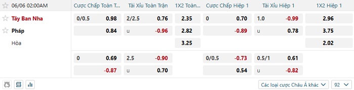 Tip kèo Châu Á full trận Tây Ban Nha vs Pháp