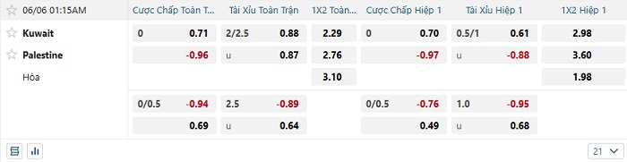 - Dự đoán tỷ số hiệp 1: Kuwait 0 – 0 Palestine