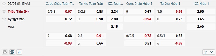 Tip kèo Châu Á hiệp 1 Triều Tiên vs Kyrgyzstan
