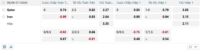 Tip kèo Châu Á hiệp 1 Qatar vs Iran