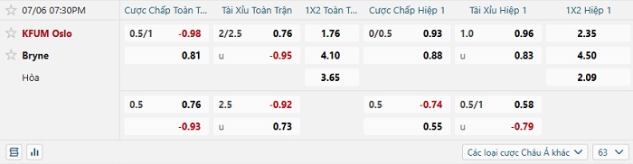 Tip kèo Châu Á full trận Oslo vs Bryne