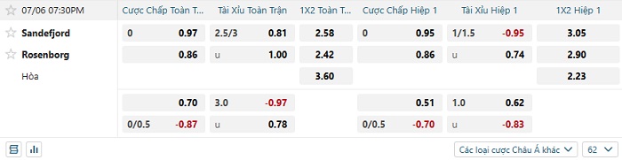 Tip kèo Châu Á full trận Sandefjord vs Rosenborg